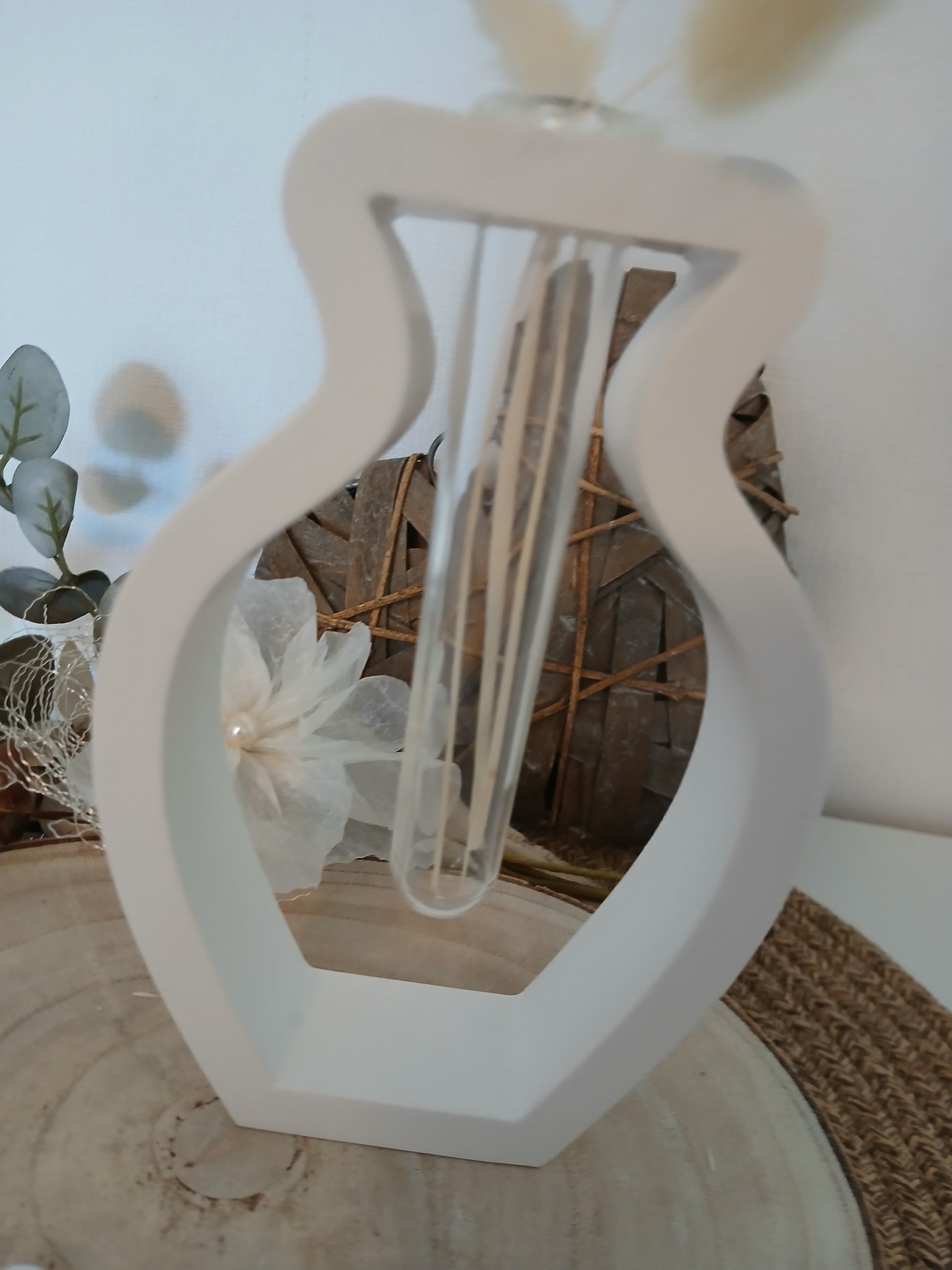 Diese besondere Vase mit integriertem Reagenzglas vereint zeitlose Eleganz mit modernem Minimalismus. Ideal geeignet für die stilvolle Inszenierung von Trockenblumen oder frischen Schnittblumen – ob im Wohnzimmer, Büro oder Eingangsbereich.